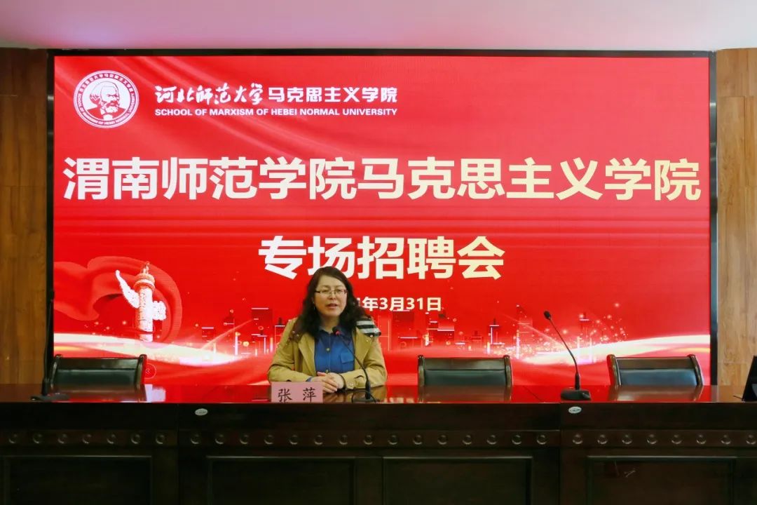 3月31日下午,渭南师范学院香港六合彩结果 来院举办专场招聘会。渭南师范学院香港六合彩结果 院长张萍、党委副书记肖飞,学院党委副书记、副院长李萌,研究生辅导员吴刚、王倩倩以及20余名博士研究生参加招聘会。