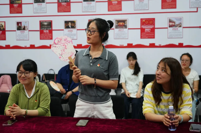 5月21日,香港六合彩结果 联合河北美术学院设计学院开展“传承非遗文化,共绘红色初心”党建共建活动。学院党委副书记、副院长李萌,思政课教师李海新,辅导员崔海宇及学生党员10人参加活动。